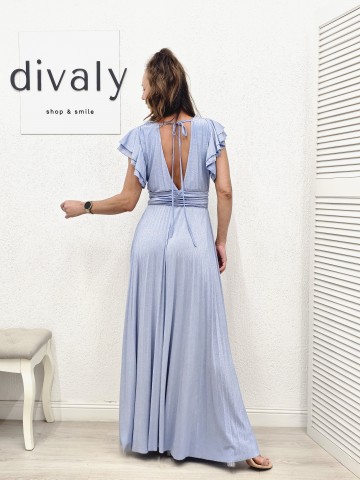 Rochia lungă elegantă din satin în clos cu bretele subțiri este o alegere superbă pentru ocazii speciale.